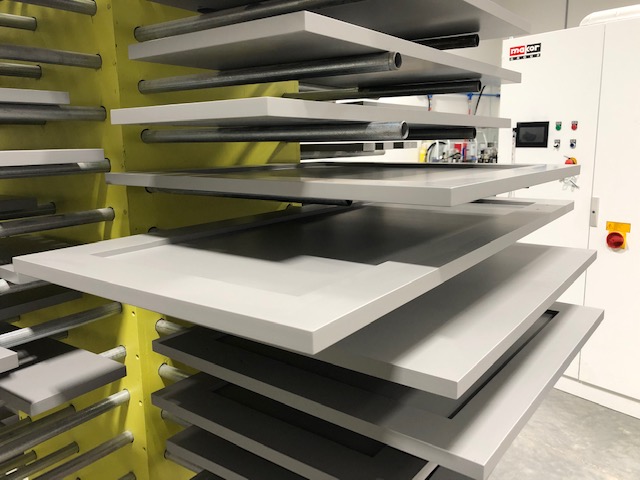 This small 4 man cabinet shop put this new spray line in to increase productivity and to better control quality without having to hire more employees.